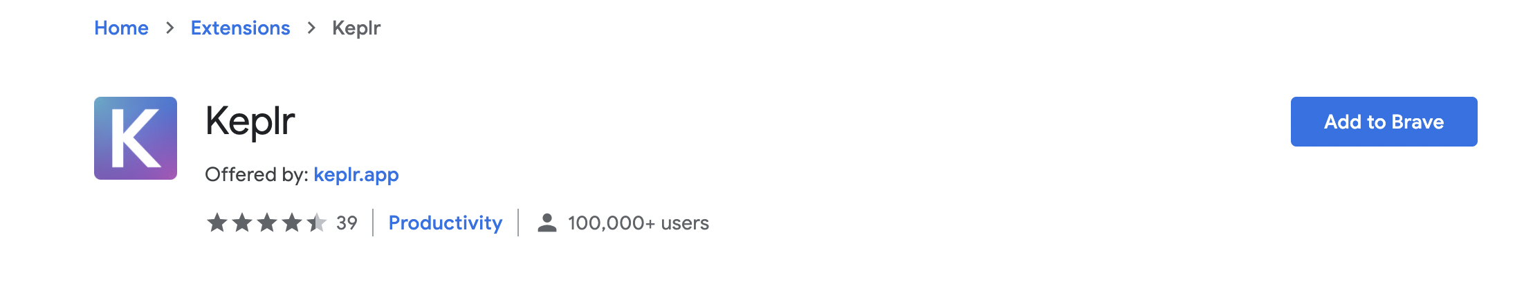 Click on Install Keplr for Chrome if you are using a Chrome browser or Brave if you are using the Brave browser and follow the installation instructions.